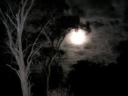 Spojrzałam w bardziej lewo. Na drzewie siedziała jakaś dziwna dziewczynka. Jej oczy świeciły w ciemnościach, zupełnie jak innych wilków. Patrzyła gdzieś przed siebie, nie zwracając na mnie uwagi. Włosy miała kruczoczarne, a reszta jej ciała rozmywała się we mgle. Spojrzała na mnie, po czym zniknęła, a raczej rozpłynęła się w powietrzu, w tak samo tajemniczy sposób, jak tutejsze drzewa. (...) Usłyszałam w oddali wycie jakiegoś wilka. Popatrzyłam z nadzieję w stronę, z której dobiegał głos. Przez ułamek sekundy widziałam zniekształconego wilka daleko za krzakami. (...) Krzyknęłam, ale mój głos został w jakiś sposób stłumiony tak, że nie rozchodził się dalej, niż pięć metrów."